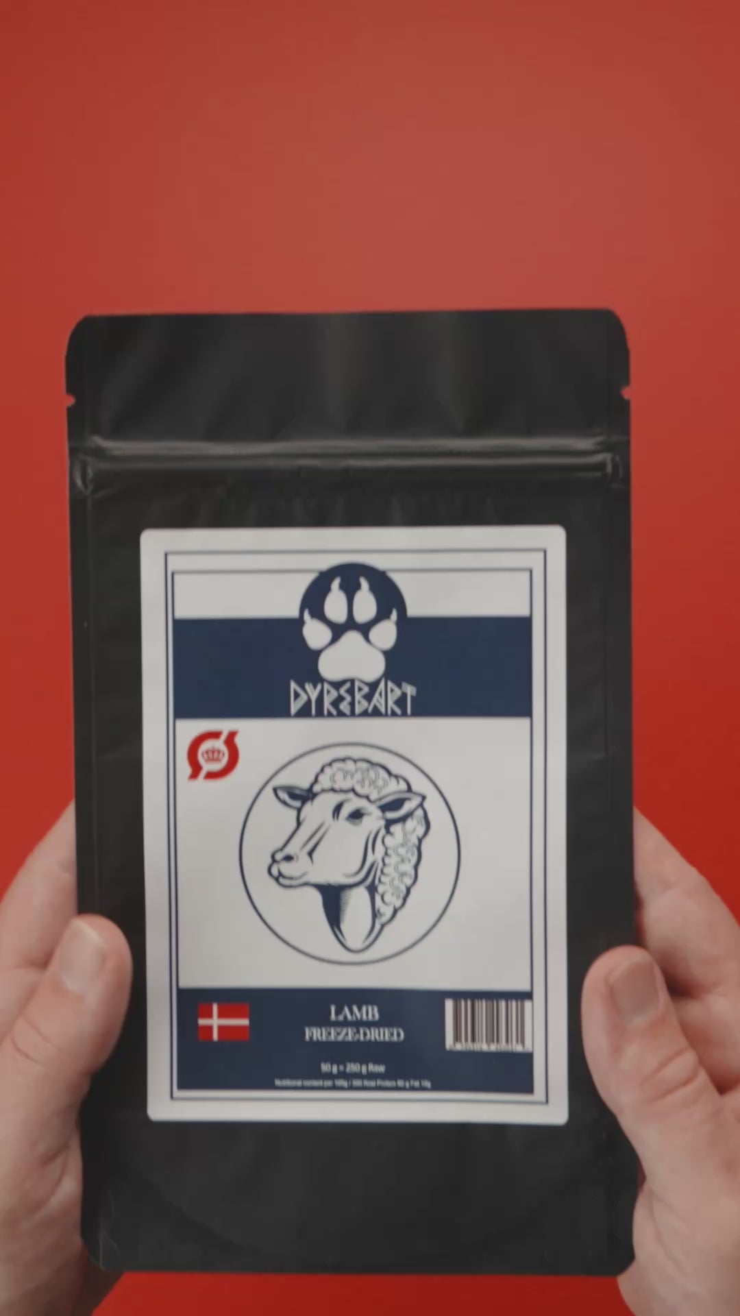 Frysetørret kød reducerer i gennemsnit vægten med 80 %. Så posens indhold svarer ca. til 250 gram råt kød.