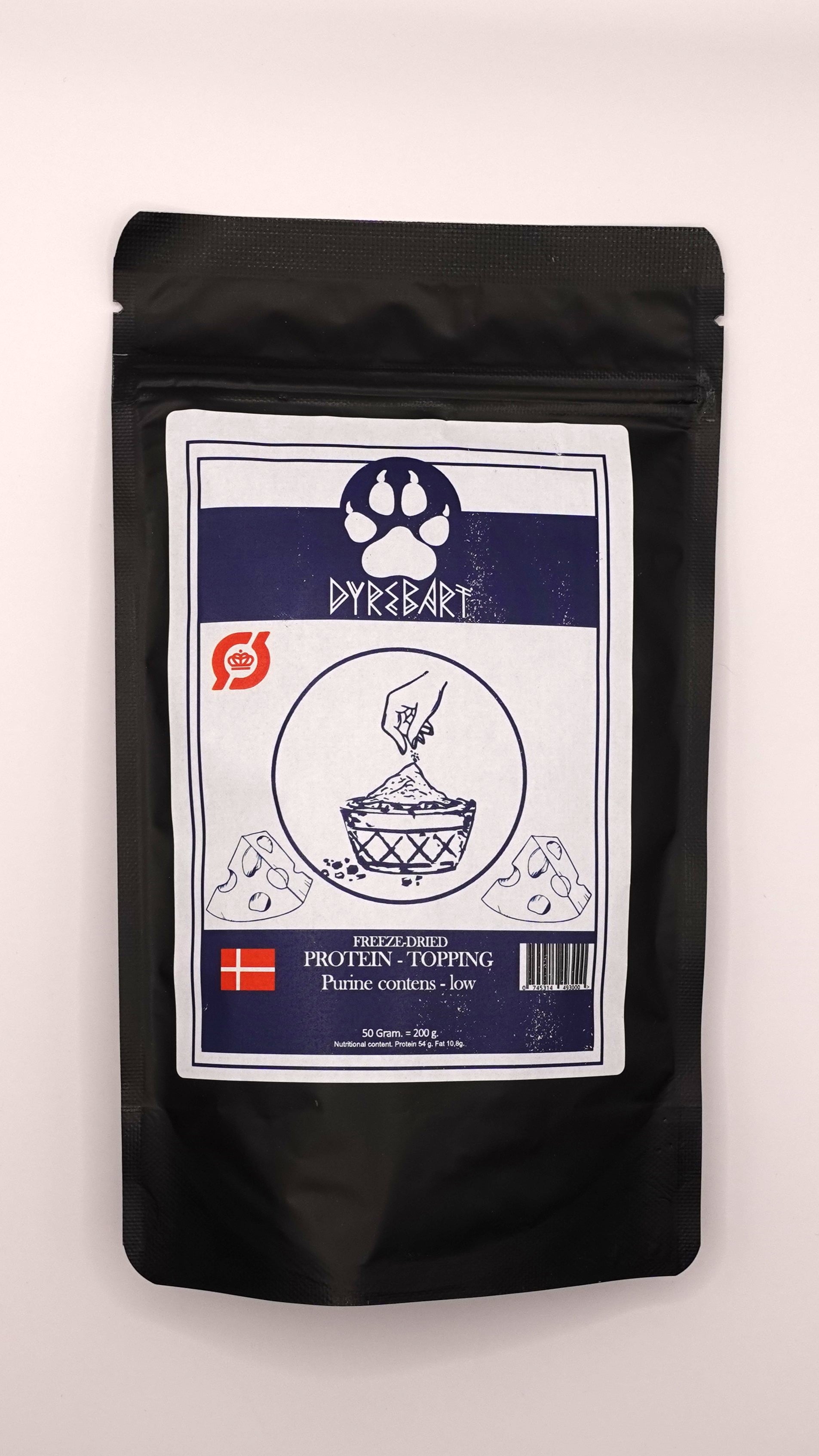 Drys det over den kræsne/allergiske hunds foder eller brug det som protein supplement.